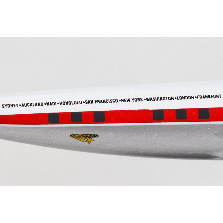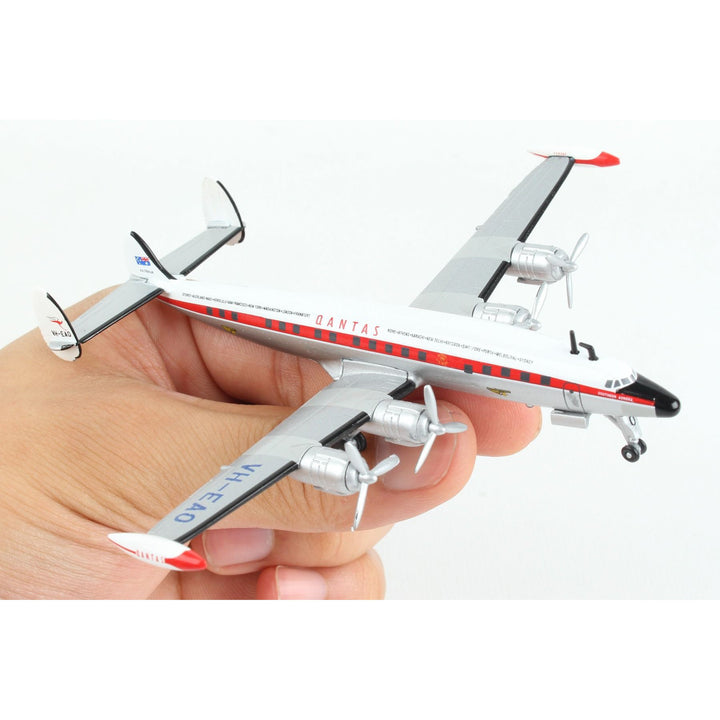 The QANTAS Constellation L1049 VHEAO represents a golden era of aviation. Known for its distinctive triple-tail design and long-range capabilities, the Constellation was a game-changer in the 1950s. The QANTAS livery on this model reflects the airline's rich heritage and pioneering spirit in connecting Australia to the world.