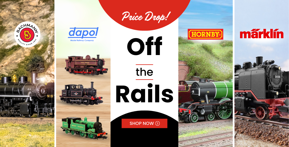 Off The Rails is Hobbyco’s biggest sale ever for model train enthusiasts! We’re rolling out massive discounts across a wide range of products from some of the most iconic names in the hobby, including Hornby, Dapol, Märklin, and Bachmann.