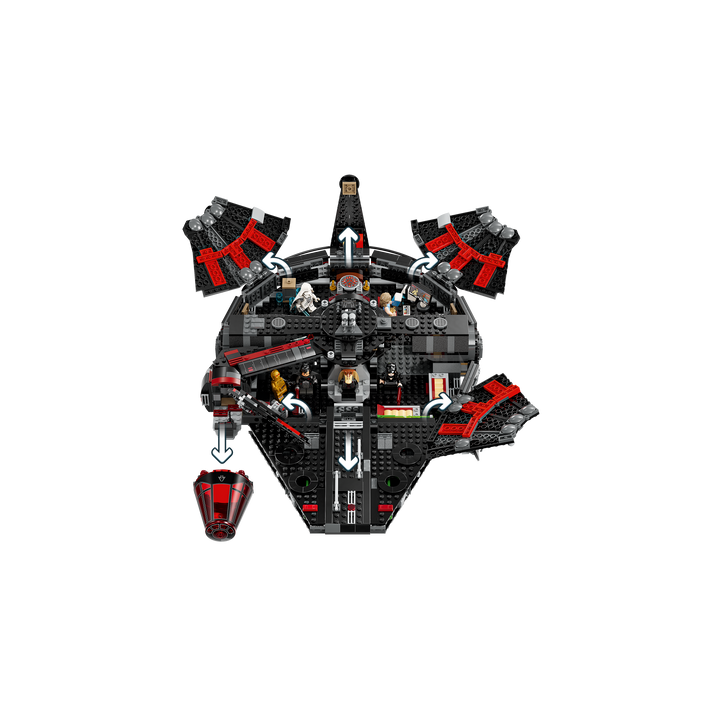 Boom! The LEGO® Star Wars™ universe has exploded, the good guys have gone bad, and this is the Millennium Falcon as you’ve never seen it before! The Dark Falcon still has all the cool features you know and love, but Darth Jar Jar, Bounty Hunter C-3PO, Darth Dev and Darth Rey are on board and ready to cause trouble. Will you help Jedi Vader stop them? Or just drink blue milk with Beach Luke?!