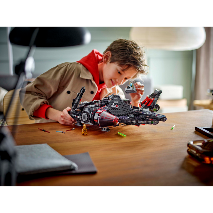 - LEGO® Star Wars™ buildable toy vehicle set for kids – Build The Dark Falcon, a dark version of the Millennium Falcon as seen in the Rebuild the Galaxy Disney+ special, to turn the universe upside down