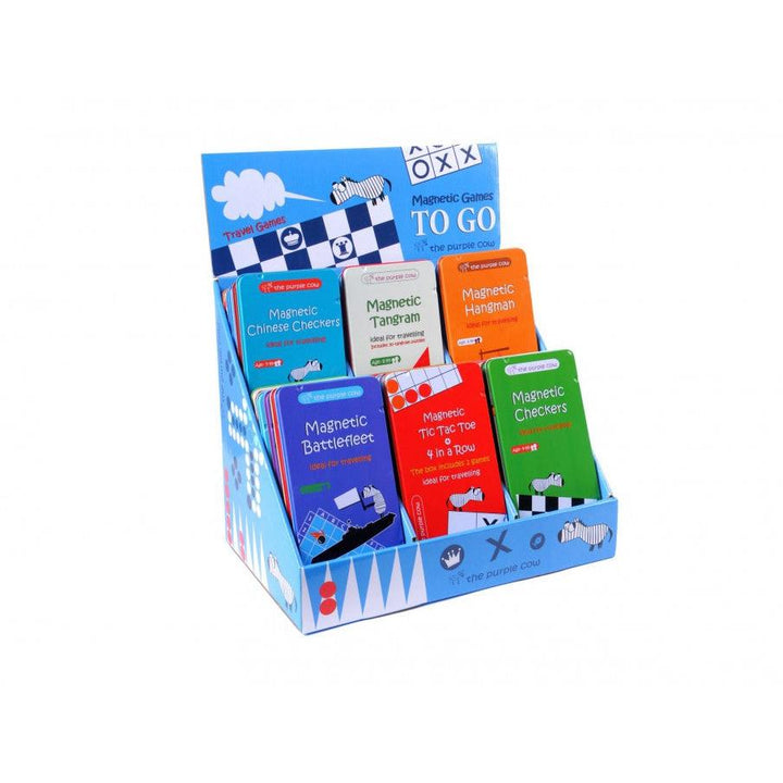 Compact and chique, a variety of 25 classic board games designed in a slim tin case, printed both sides with magnetic pawns and pieces. Fun and affordable travel games, for all ages.