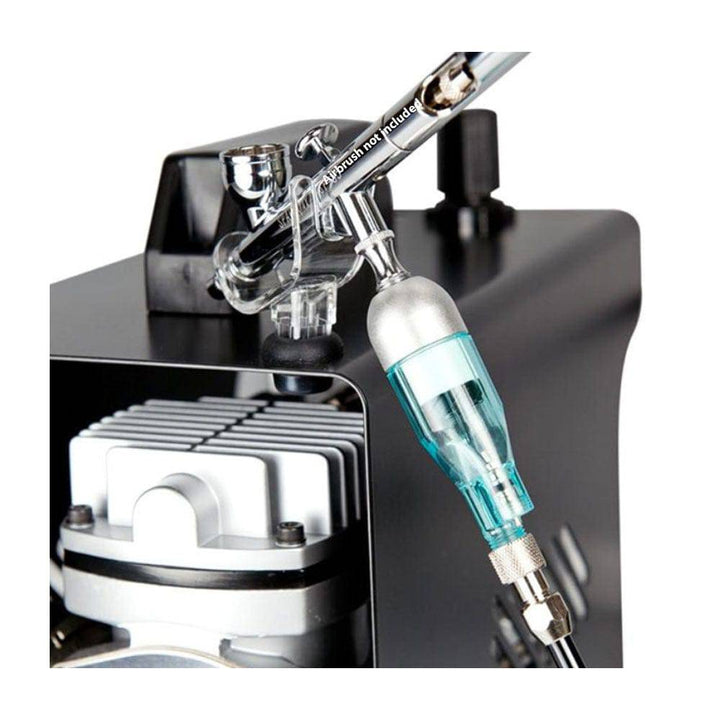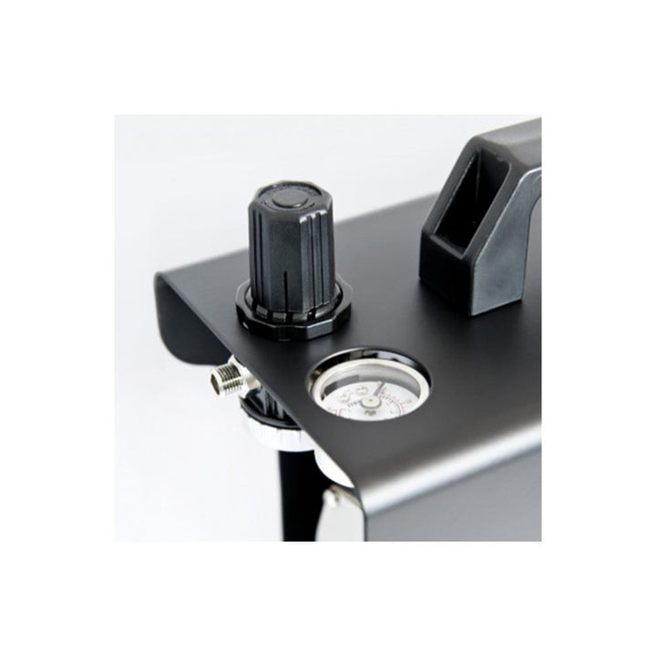 Housed in a curved metal case, the AC-501X model provides airbrush enthusiasts with a performance level which matches its aesthetic appeal. The regulator and gauge combo is also protected by the case. The case itself has also proven to be popular with customers who have gone on to customizing it with their own designs after purchase; the smooth finishing is compatible with stickers, paints, and of course, airbrush colors. Reduction of moisture in the output air is also helped by the inclusion of the patented Silver Bullet moisture trap. Whether in your own garage or a beauty salon, the AC-501X wouldn’t miss a beat. An ideal unit for any airbrush enthusiast.