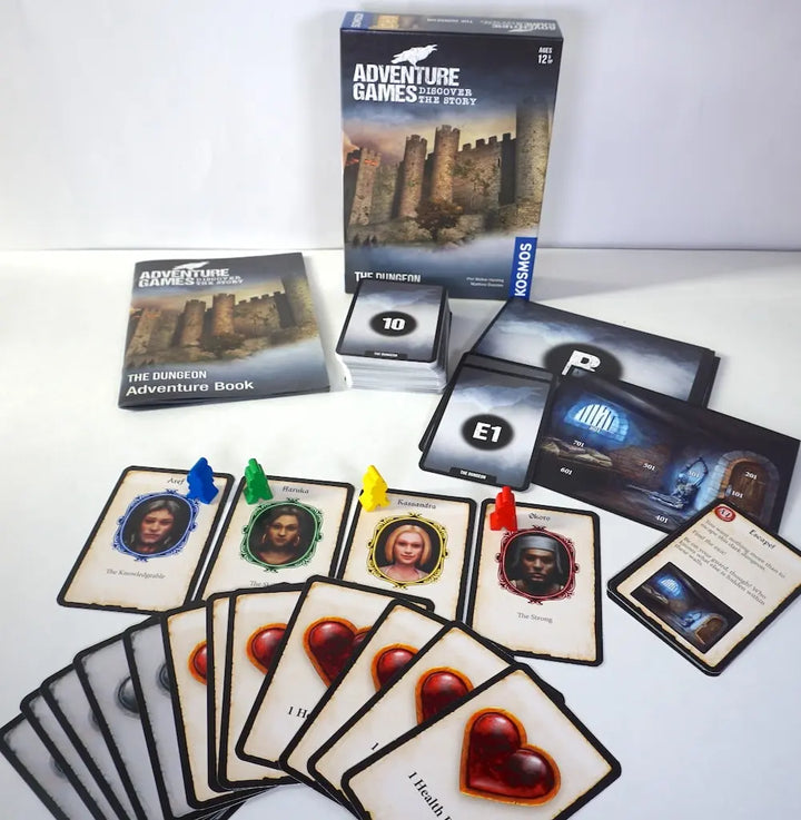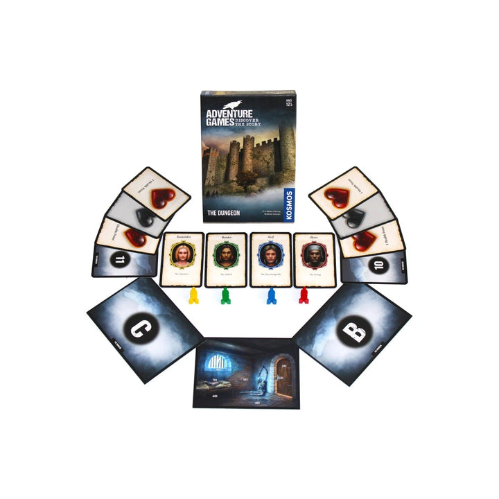 Explore places, combine items, and experience stories in Adventure Games, a series of co-operative games from German publisher KOSMOS. In each of these titles, players are presented with a mysterious story that they must unravel over the course of play. Working together, players explore common areas, talk to people, look for clues, and combine various items to reveal the secret of the story. Depending on what decisions the players make, the course of history changes and there is no going back! Unlike the co-operative EXIT: The Game series, titles in this series focus on the telling and discovery of the story with no time pressure. That said, many different paths can be experienced during play, with more than one correct resolution to the story waiting to be discovered. Each title consists of three chapters, each taking about 75 minutes to play. Nothing is destroyed, so the games can be played multiple times. In The Dungeon, the players awaken in a prison cell in the middle ages with no memory of how they got there. What happened? What strange things are taking place in this dungeon? And most importantly, how can they get out? Over three chapters, players will jointly explore rooms, combine objects, and perhaps even encounter creatures that lurk in the dark rooms of the old castle...
