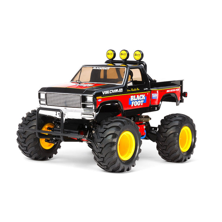 This re-release version of the Blackfoot assembly kit features a chassis with a number of updates while keeping largely to that used on the original off-road car released in 1986. It includes a highly realistic ABS body with roll bar and metal plated front grille parts. The kit also comes with colorful marking stickers and a driver figure.