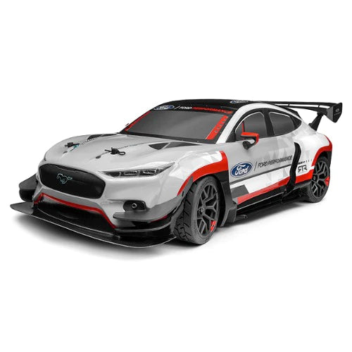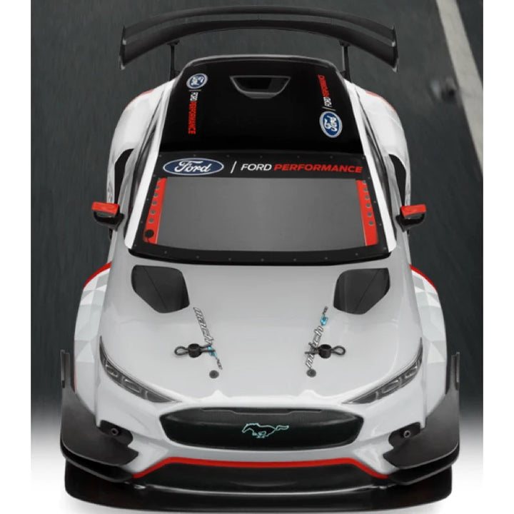 Under the hood, the 1/10th scale version Ford Mustang Mach-E 1400 is equipped with the latest HPI Racing Touring Car chassis, the Sport 3 FLUX! With a full-time shaft drive, fully sealed 4WD drivetrain, brushless motor and waterproof electronics and 2.4GHz radio gear, fully independent double wishbone suspension and adjustable oil filled shocks it’s Ready to Rock in any condition - and HPI FLUX power means it's got plenty of power for 4-wheel drifts and jaw-dropping speeds at the pull of a trigger!