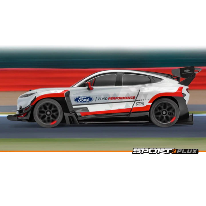 This Sport 3 FLUX features the amazing 4WD, all-electric Ford Mustang Mach-E with styling tuned and tweaked by the Fun-Haver himself, professional drifting champion Vaughn Gittin Jr., to become the awesome Ford Mustang Mach-E 1400 prototype, a test bed for advanced materials and technologies. With SEVEN electric motors and super-high downforce levels, it's not just a research vehicle - it's also an all-out performer perfect for a variety of automotive tests, from the drag strip, drift course and race track! The full-size version took over 10,000 hours of development work between Ford Performance and RTR to make sure it bridges the gap between what an electric vehicle can do and what customers tend to believe it can do.