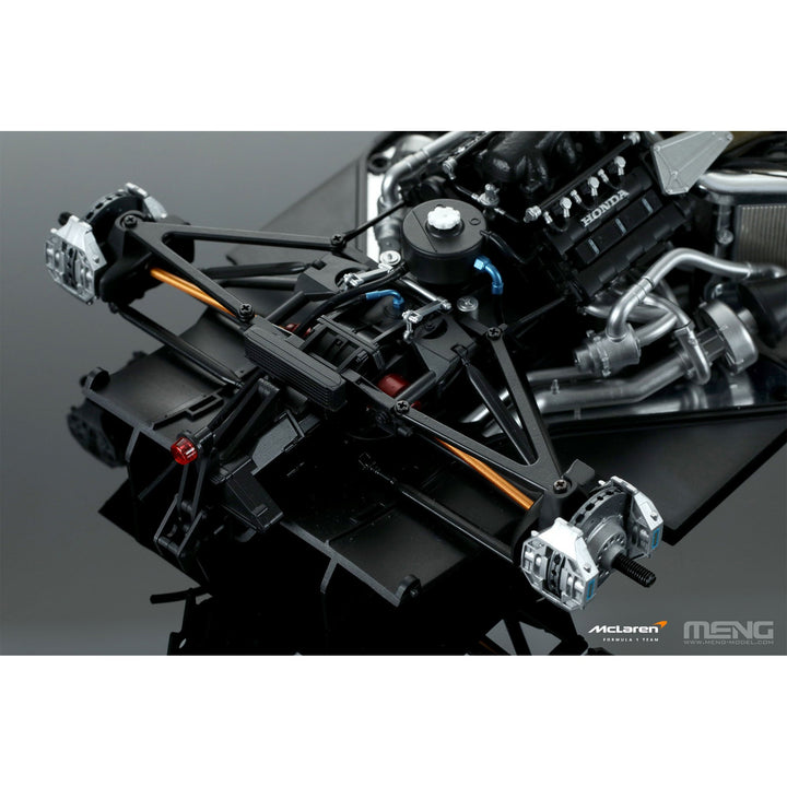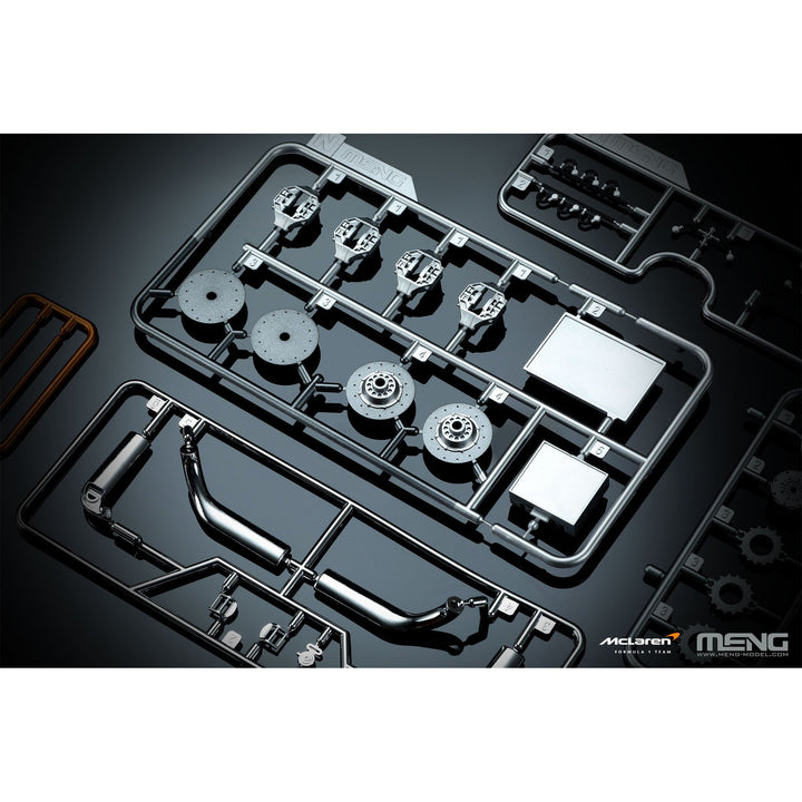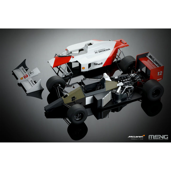 Licensed by McLaren Racing Limited, MENG will soon release the RS-005 1/12 McLaren MP4/4 1988 (Pre-colored Edition) model kit. This kit continues the style of MENG's pre-colored edition kits. Its sprues are pre-painted and the carbon fiber components feature pre-made carbon fiber texture. The finished model will be 367mm long and 177mm wide. This kit includes fine decals and metallic effect foil.