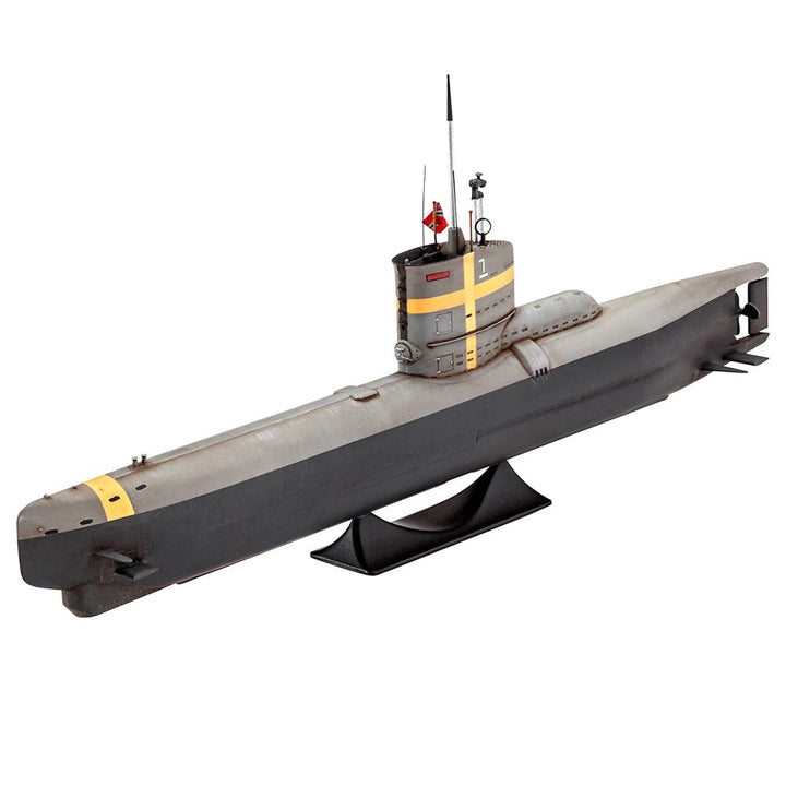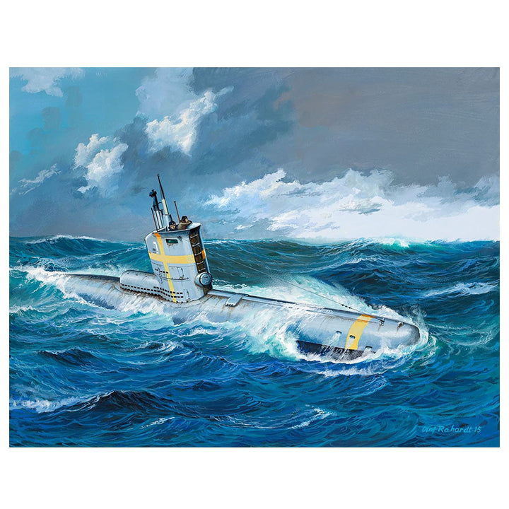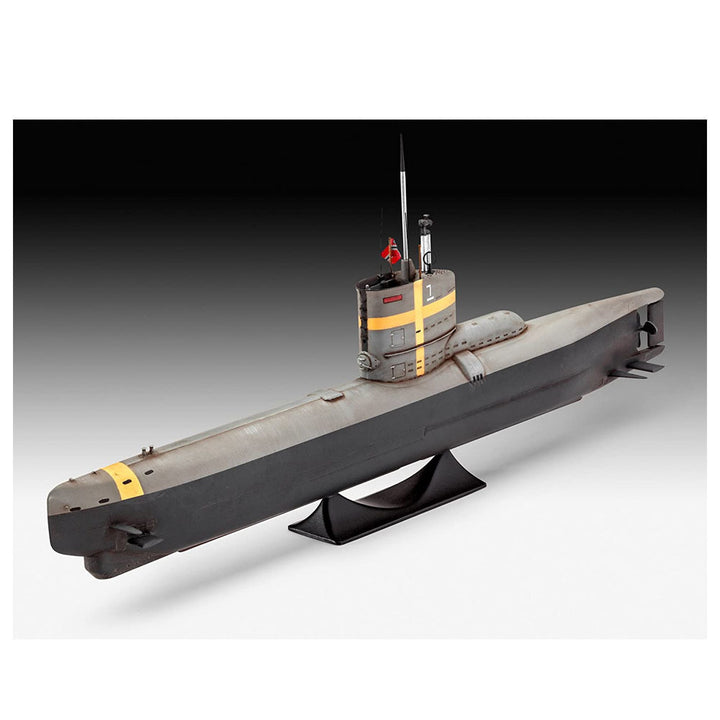 A late war design, a small coastal U-Boat, armed with only two torpedoes, but able to stay submerged longer than most submarines with the high capacity electric motors. Designed to be built in sections, to disperse construction, and for the sections to be transportable by rail to an assembly yard. Just 6 went out on operations though a total of 61 were built. I believe 8 were sunk while over 30 were scuttled by their crews at the close of the war. Of the 20 that surrendered to the Allies, most of these were then scuttled, and one going to the Soviet Union. West Germany later raised a couple of the boats and re-commissioned them. They proved very capable, despite one sinking with heavy loss of life, and from them they developed the Type 206 which is still used to this day.