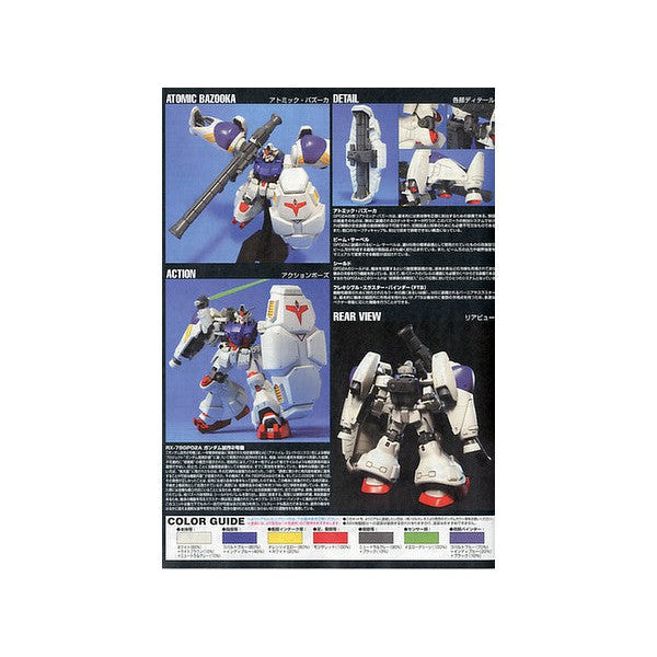 Awesome HG kit of the all-powerful and intimidating Gundam GP02A as appeared in the MS Gundam 0083 Stardust Memory OVA. It's a simple snap-fit plastic kit of GP02A that comes with all of its weapons used in the OVA including the giant bazooka and a super thick shield. Included in this kit is a display stand that can hold GP02A as if it's floating in space. The display base also allows for another stand attachment where GP01 (sold separately) can be attached for a beam saber fight display with GP02A as seen in the OVA series.