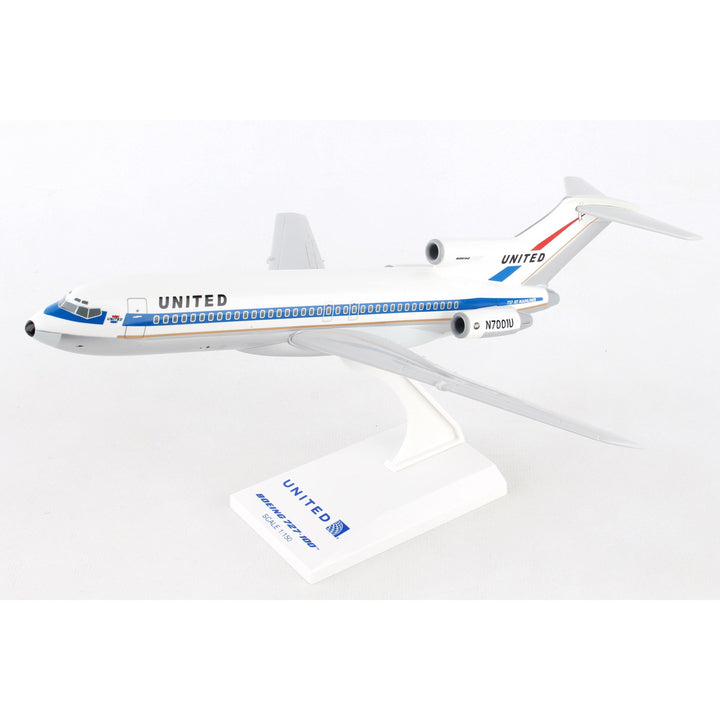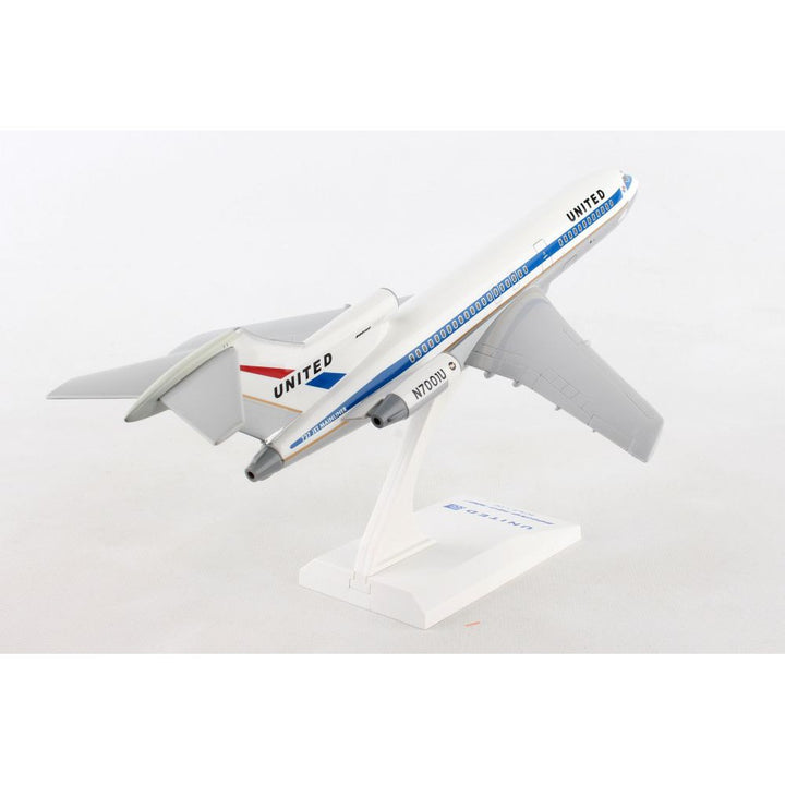 Comprising superior quality, solid injection molded plastic components with a simple snap-fit design that allows for easy assembly without the need for glue, SkyMarks 1/150 Scale United Boeing 727-100 measures approximately 11-1/8-inches long with a 7-1/2-inch wingspan and comes complete with a Display Stand. An accurate, true-to-scale reproduction of the actual aircraft, the model is great for collectors and features authentic, highly detailed graphics and markings. United and Eastern were the initial launch customers for the Boeing 727-100, which first flew in February 1963. Mainly used for domestic flights, the Boeing 727-100 is a narrow-body airliner that was developed to address the demand for smaller aircraft for use on shorter flights from smaller airports. Boeing ended production of the 727 series in September 1984, having built a total of 1,832 planes.