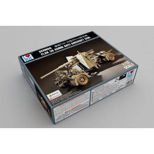 The I Love Kits 1/18 German Flak 36 88mm Anti-Aircraft Gun Plastic Model Kit is a large-scale, highly detailed model of the iconic German 88mm anti-aircraft gun used during World War II. Here's a breakdown of its key features and why it's appealing to modelers: