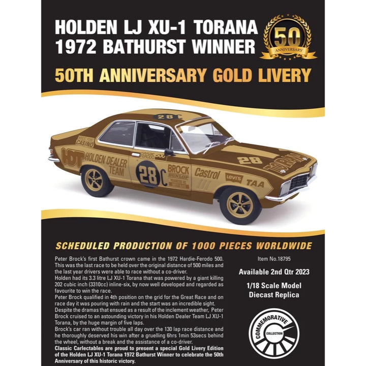 Classic Carlectables 1/18 Holden LJ XU-1 Torana 1972 Bathurst Winner 50th Anniversary
