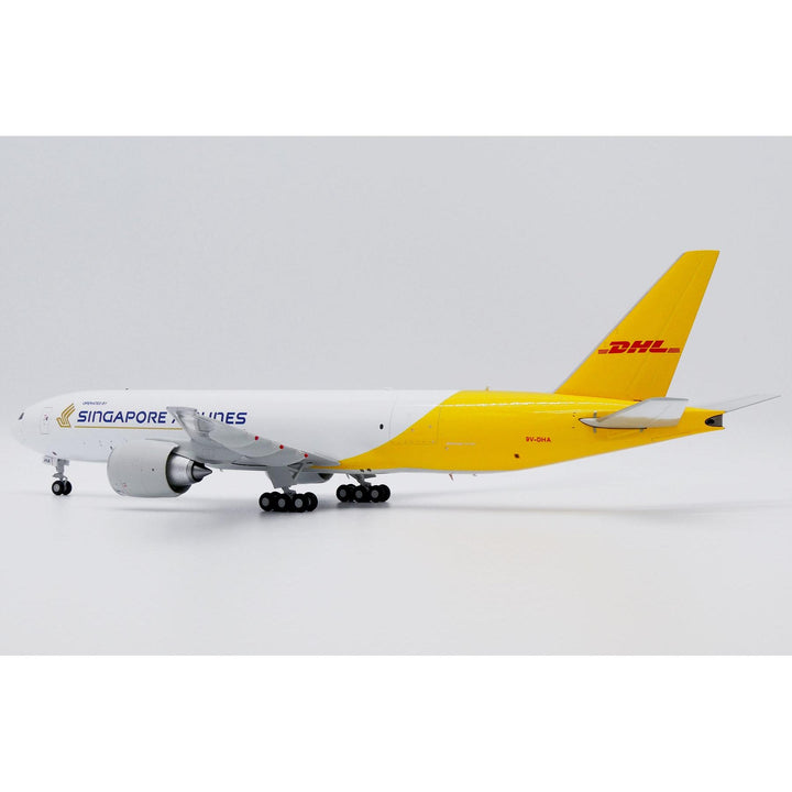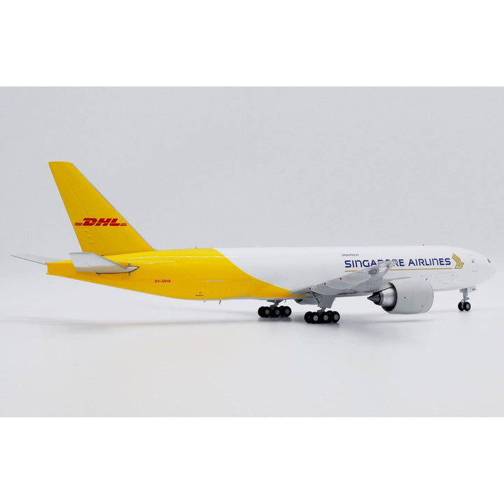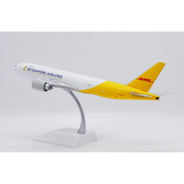 1/200 DHL (Singapore Airlines) Boeing 777F Reg: 9V-DHA with Stand by JC Wings delivers stunning display quality for aviation collectors and DHL enthusiasts.