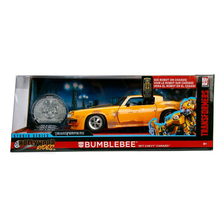 - Brand new 1:24 scale diecast model car of 1977 Chevrolet Camaro (Weathered) with Collectible Coin