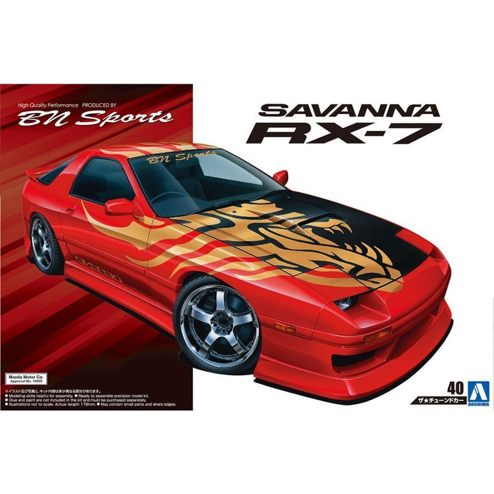 Experience the fun and thrill in building your own car model right in the comfort of your own home or any area! Feel the attitude of the vehicle that is an identical replica of their respective real life model unit. In 1989 Mazda produced a sporty limited edition model of the RX-7 to celebrate its domination in IMSA racing. Now in commemoration Aoshima brings us this sharply molded 1/24 scale model of the Savanna RX-7. The body parts of the car come molded in white and black. The wheels and exhaust system are chrome plated which enhance the sporty look of this high quality performance vehicle!