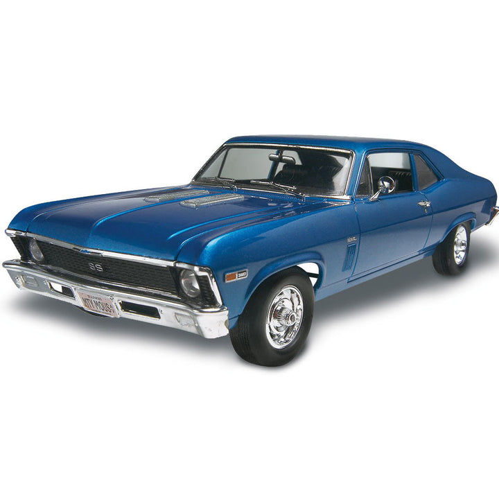 The 1969 Chevrolet® Nova "SS" came from the factory with a high-performance 300 hp Turbo-Fire 350 cubic inch engine, special 3-speed gearbox and heavy duty suspension. It had a black accented grille, simulated hood air intakes and fender louvers. There is no doubt that this is one of the great cars of the muscle era.
