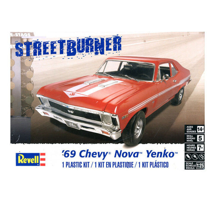 1/25 StreetBurner 69 Chevy Nova Yenko by Revell delivers custom muscle car style and Yenko performance for automotive modelling enthusiasts.