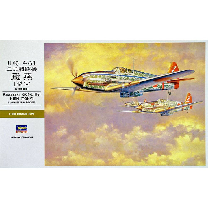 The 1/32 scale is ideal for model Kawasaki KI61-I Hei Hien (Tony) from Hasegawa is a military models and figurines! Features highly detailed, injection-molded grey plastic parts, a detailed cockpit with instrument panel and pilot, realistic landing gear and two waterslide decal marking options.