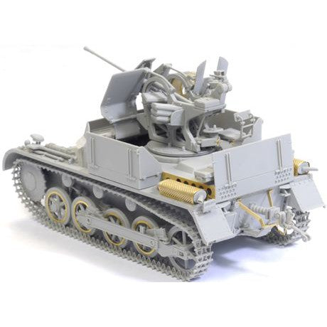 The 2cm Flak 38 auf Pz.Kpfw.I Ausf.A, also known as the Flakpanzer I, was an early German self-propelled anti-aircraft gun (SPAAG). It consisted of a 2cm Flak 38 gun mounted on the chassis of a Pz.Kpfw.I Ausf.A light tank. These vehicles were deployed in the early years of World War II to provide mobile air defence for advancing German forces. Due to the limitations of the Pz.Kpfw.I chassis, production numbers were limited, making it a rare and interesting vehicle.