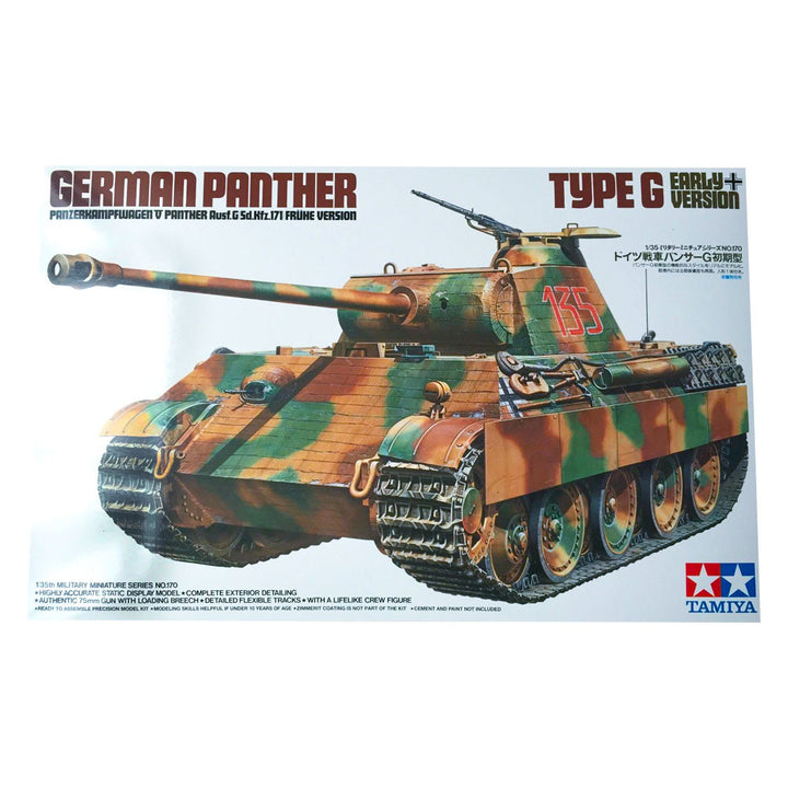 1/35 German Panther Type G Early Version by Tamiya delivers historical accuracy for scale model enthusiasts.