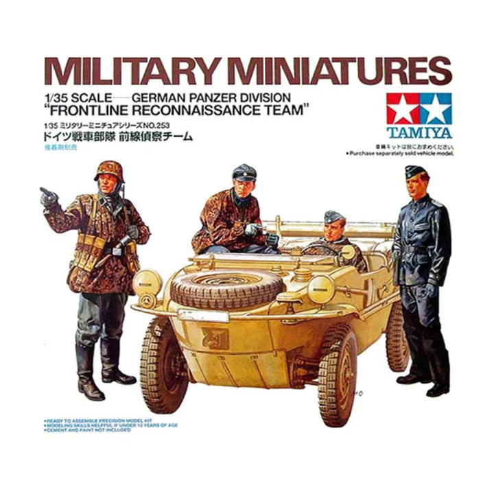 1/35 German Panzer Division Frontline Reconnaissance Team by Tamiya delivers historical accuracy for military model enthusiasts.