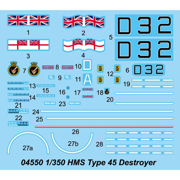 04550 1/350 HMS Type 45 Destroyer Plastic Model Kit by Trumpeter delivers a highly detailed replica for naval enthusiasts and experienced scale model hobbyists.
