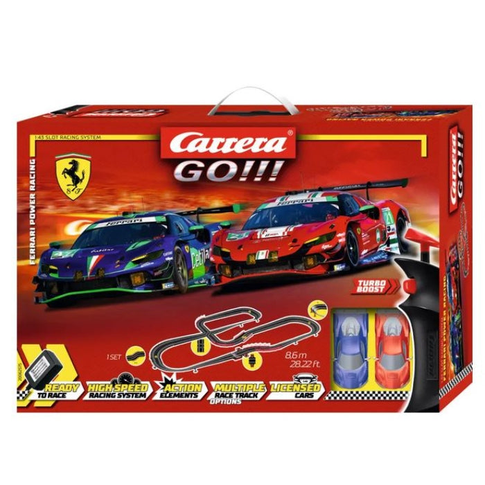 1/43 Ferrari Power Racing - GO!!! Slot Car Set delivers the thrill of Italian supercar performance with iconic Ferrari models battling it out on the track!