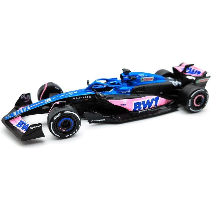 The Renault Alpine A523 is a testament to modern F1 engineering and design. Driven by Esteban Ocon, this car represents the cutting-edge technology and competitive spirit of the Alpine team. Its vibrant livery and aerodynamic design make it a standout on the track and in any collection.