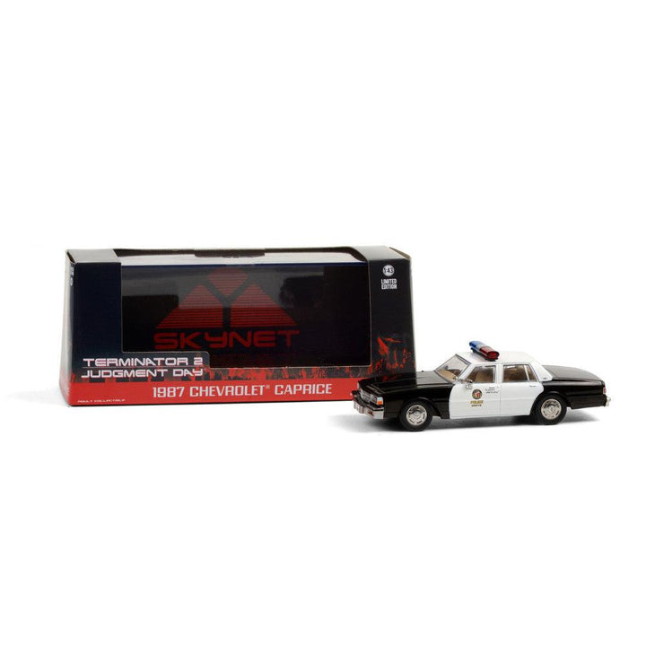 Make your neighbors jealous with this gorgeous tv car from Greenlight! This 1987 Chevrolet Caprice Police is a 1/43 scale model replica. It comes in white and features real rubber tires, metal body and chassis, detailed exterior, comes in a hard plastic case. It's an outstanding automobile for any tv car collection, and a must-have for hardcore Terminator 2: Judgement Day fans!