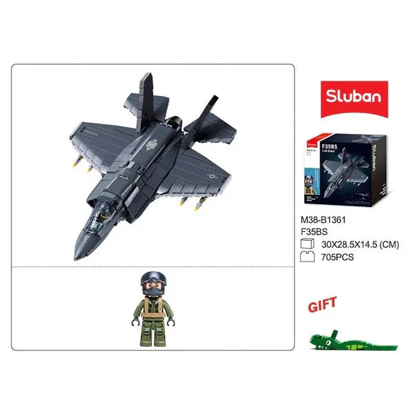 1/44 705pc Model Bricks F35 BS Fighter by Sluban delivers a fun and engaging building experience for creating your own futuristic fighter jet, perfect for creative kids and aviation enthusiasts who enjoy building block models.
