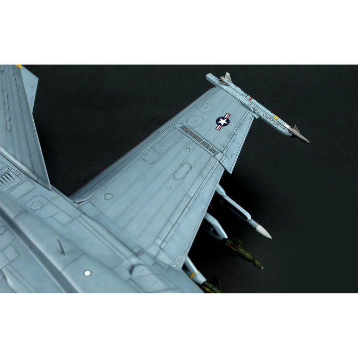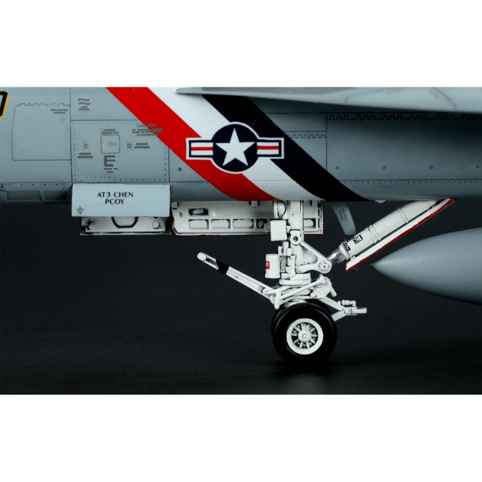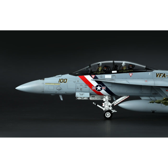 The F/A-18F, nicknamed Super Hornet is a two-seat carrier-based fighter aircraft developed by The Boeing Company. This multirole fighter can perform operations like maintaining air superiority, ground attack, maritime strike, air control and refueling of other aircraft. The surface of this aircraft is coated with a special material that can absorb radar waves to greatly reduce the radar reflection, and it has the capability of stealth combat. It has as many as 11 weapon mounting points, and it can carry almost all types of U.S. Navy ammunition including the Joint Direct Attack Ammunition (JDAM) and the Joint Standoff Weapon (JSOW). As an important carrier-based fighter aircraft in active service in the U.S. Navy, the F/A-18F Super Hornet has participated in the U.S. military's combat missions in many places around the world in recent years.