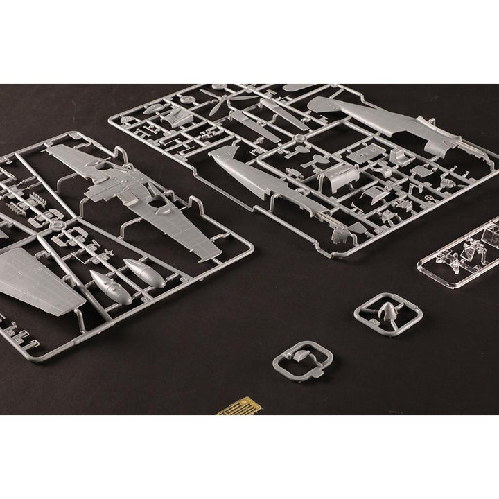 - Detailed cockpit and fuselage moulding: Accuracy in interior and exterior panels based on the Bf 109E-4 variant.