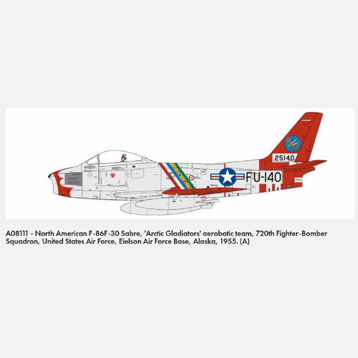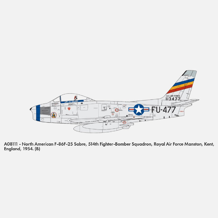 This is a plastic model kit that requires assembly. Paint and glue are needed to complete the model. Carefully remove parts from the sprues using modelling tools. Follow the instructions to assemble the aircraft, paying attention to the details of the cockpit and airframe. Apply paint and Korean War decals for a realistic finish, depicting an F-86F Sabre in USAF service. Display your Sabre model with pride, showcasing its historical significance.