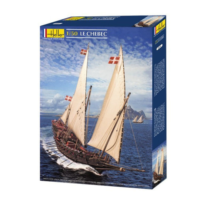 It should be noted that LE CHEBEC is not the original name of a boat, but corresponds to a type of very slim, streamlined yacht, normally with three masts, with Latin form sails and oars. The form and sails of LE CHEBEC vessel closely resemble those of a galley, its narrow bow and external stern platform visibly resemble the galley's ram and deck. The construction of the LE CHEBEC vessel reproduced by HELLER, and that of the other three ships, was decided in 1750 by the Minister Antoine-Louis de ROUILLE, Count of Jouy. The four prototypes must have proven satisfactory, as in 1764, the construction of four new LE CHEBEC ships was decided. The history of LE CHEBEC is not well known and is often associated with the many adventures of French corsairs, or even the boarding of merchant ships. The LE CHEBEC ships have now disappeared, after having nevertheless survived nearly half a century as fishing vessels. It is accepted that naval construction has never seen vessels as streamlined, designed for speed and attack. Since 1957 Heller has been producing legendary model kits in Trun, France. From small airplanes to giant sailing ships, the range inspires beginners as well as model building professionals all over the world.