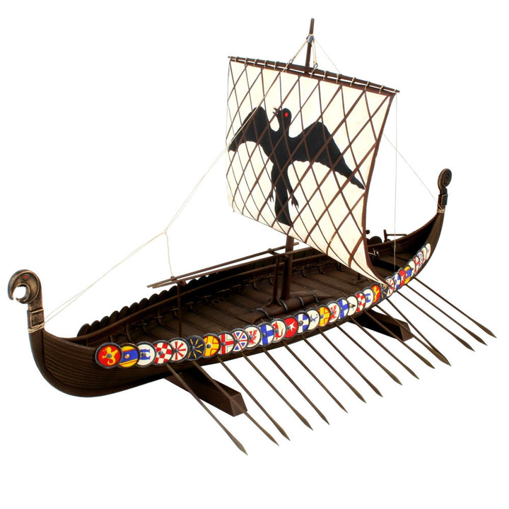 Such 'dragons' were constructed without plans and the design was passed down from father to son. The Vikings were able to mount fast, surprise attacks with these longships, but could retreat just as rapidly in the face of massive resistance. This type of ship had an approximately 20 m long displacement hull of overlapping wooden plank construction. It was held together with metal rivets.