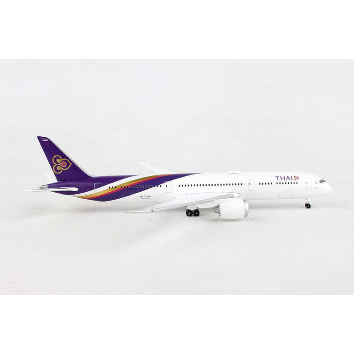 This die-cast metal airplane model comes in 1/500 scale with landing gear no stand. Model is approximately 4 7/8 inches long with 4 5/8 inch wingspan.