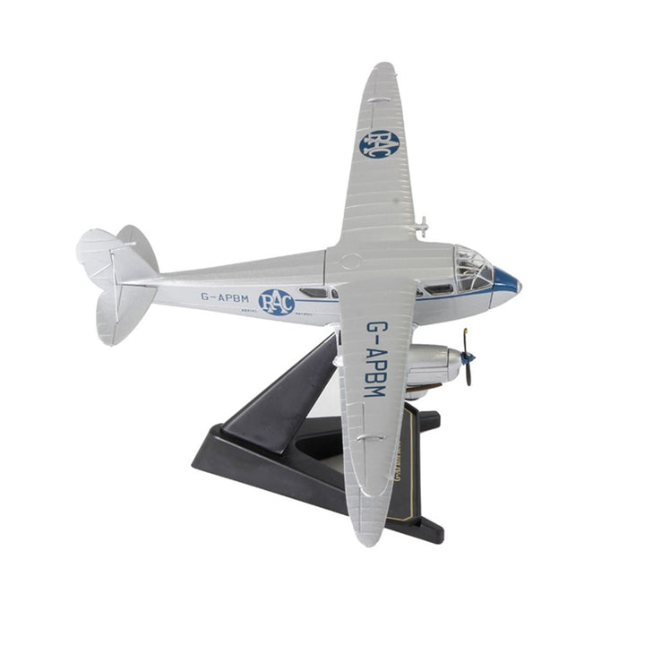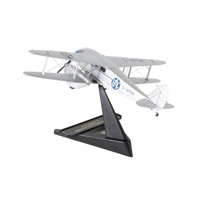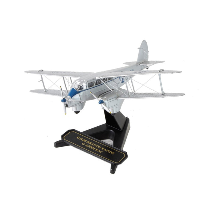 The 1930s DH Dragon Rapide bi-plane lent itself to a variety of uses and our researchers have found a most unusual version for this latest Oxford release, as deployed by the Royal Automobile Club (RAC) for aerial patrols. Resplendent in silver with the signature blue RAC insignia on the upper and lower portside wings and along the fuselage, the aircraft's G-APBM lettering is also printed in blue. An especially fine detail includes an air speed windmill on the front of the upper left wing.