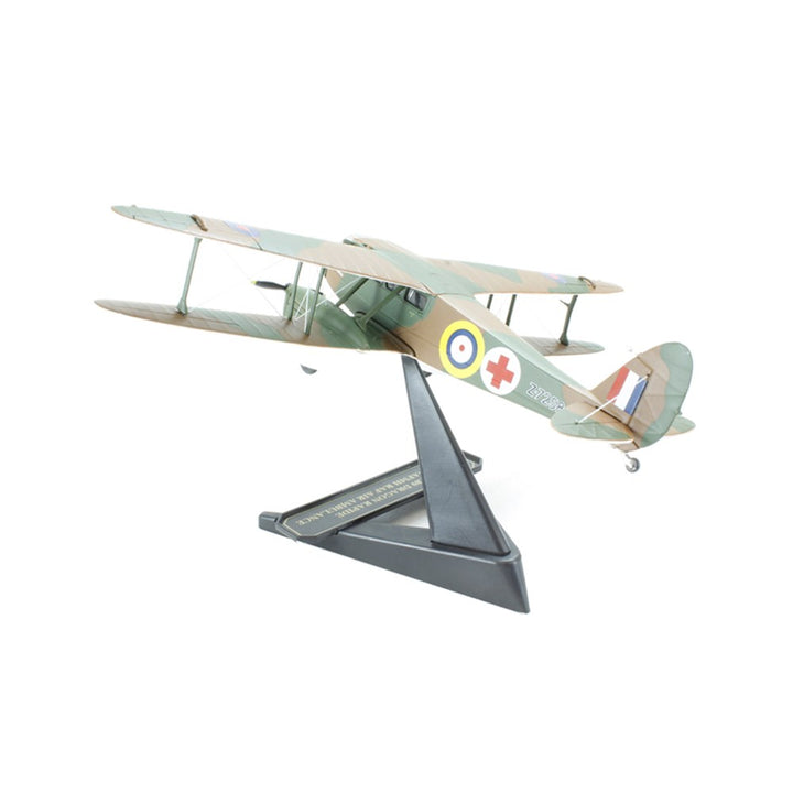 This popular 1930s British passenger bi-plane used for short haul flights was distinctive with its twin engines, tapered wings, streamlined farings as well as its speed and comfort. It now has its seventh 1:72 scale Oxford Aviation outing as a military air ambulance, as used by the RAF. Its role is distinguished by the Red Cross markings on the side of the fuselage and it wears its camouflage colour scheme of dark earth/dark green with pale green underside. With RAF identity Z-7258/G-AFMH printed on its rear fuselage, its RAF roundel markings put it as flying in the very late 1930s.