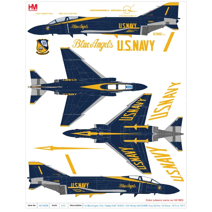 Hobby Master 1/72 F-4J Blue Angels 'Cdr. Harley Hall' 153812 Cdr Harley Hall & AMHI Guy Giuffrai US Navy 1970-71