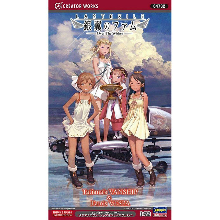 Special kit to commemorate the movie version released February 6, 2016! In addition to 1/72 scale Tatiana's Van Ship and Femme's Vespa, it is a special content that has set as a bonus part 1/35 scale standing pose figure parts (made of resin / flying clothes) of Femme & Giselle as bonus parts.