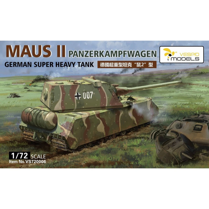 Unassembled plastic model kit in 1/72 scale of a German WWII prototype tank MAUS II, based on MAUS tank fitted with a new turret.