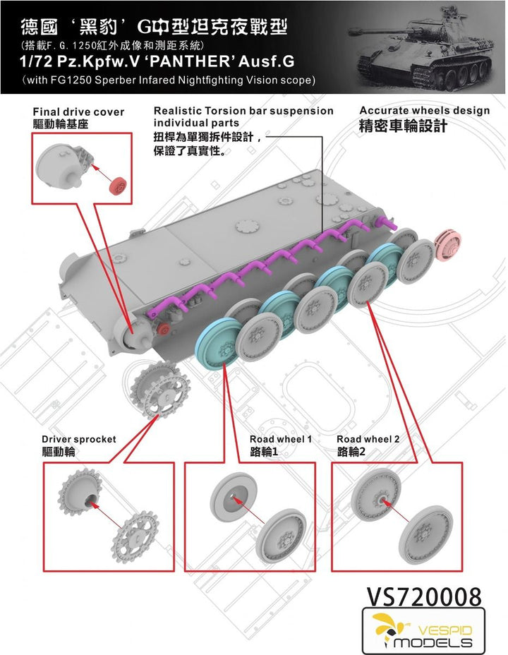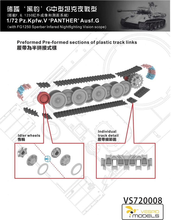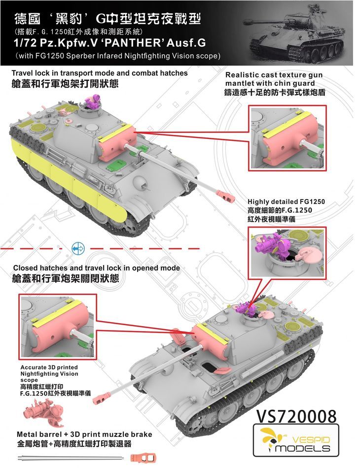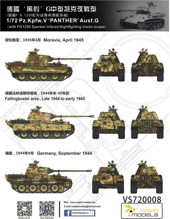 The kit allows you to make one of the three versions of the "Panther Ausf.G" tank: earlier/late/final.