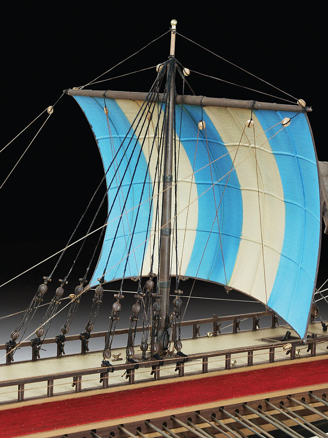 The Battle rowing ship, similar to the Greek Trier, was the main type of combat ship of the Mediterranean era of antiquity. Three rows of oars of different lengths were placed on three levels. The speed of the trireme was 6-7 knots, two straight sails were used as an auxiliary movement. The main weapon was a RAM bound with bronze, which was a continuation of the keel beam. During the battle, the trireme sought to develop the maximum speed and hit a battering RAM in the side of the enemy, breaking his paddle and hit the Board. On the ship was also installed "Raven" - boarding bridge, which when approaching the enemy ship fell on him. A sharp heavy metal bar - the beak of the "Raven" falling, punched the deck of the enemy and tightly linked the two ships. Formed by the ladder, the Legionnaires got on the enemy ship. The crew of the trireme was up to 350 people, including rowers.