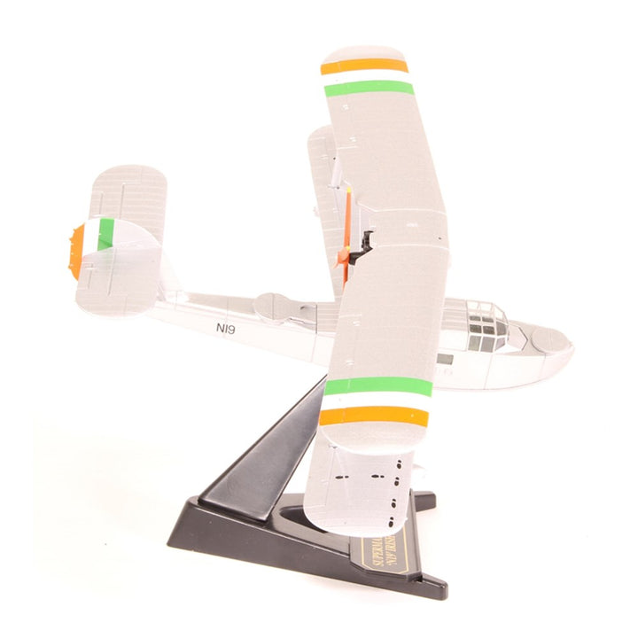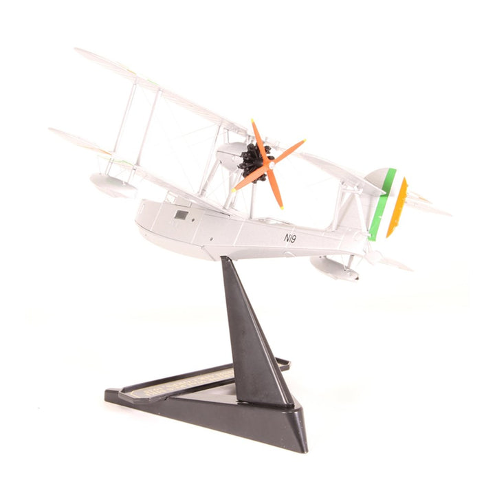 Our model represents the N19 Walrus which actually made it to the airbase in one piece. Decorated in silver with the Irish orange, white and green striped markings to the wings and tail, the detail includes a green cockpit and black instrument panels. Even the walkways on the upper wings are reproduced as a series of black ‘footprints’. Its N19 numbering is printed in black on both sides of the fuselage. Note that on this release of the Walrus, given its role within the Irish Air Corps, the bomb racks and guns have been omitted.