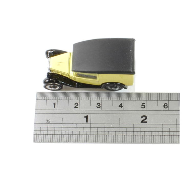In real life, one of the Austin Seven RN variants came in the shape of a van, a converted RN saloon but an invaluable and popular small commercial vehicle in its time. A two-seater, the rear section was stripped out to take whatever deliveries were the order of the day. The front was very basic and the two bucket seats look a bit uncomfortable although they were undoubtedly leather. This Austin RN Van replica is decorated in a primrose body colour with contrasting black roof and chassis. Registered JC 655, it comes completely plain on the sides with two silvered windows on the rear doors. A black coachline extends centrally from the front doors along the length of the bonnet side and all other exterior trim including wheels, running boards, exhaust and headlights is finished in black. The windscreen wipers, door handles and wheel inserts are highlighted in silver. Inside the van, the dashboard is also finished in a primrose colour scheme, the door trim is brown and the remaining interior is black.