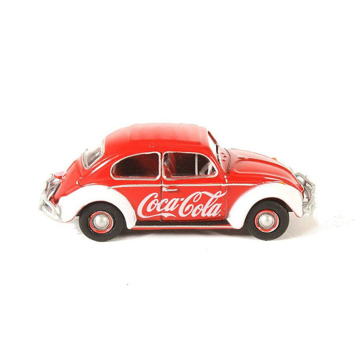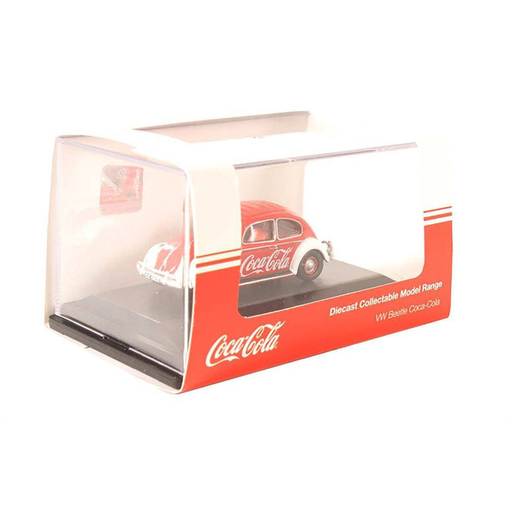 Description This is a great fun rendition of the iconic VW Beetle making its latest entrance in the bright red and white signature Coca Cola colours, with bright red body and white wheel arches and trim. Registered CC 1300, the interior also takes on the corporate look with red seats, door panels and dashboard and white steering wheel. A final detail sees the running boards masked black and the oval rear lights finished in a dark tinted red in contrast to the body.
