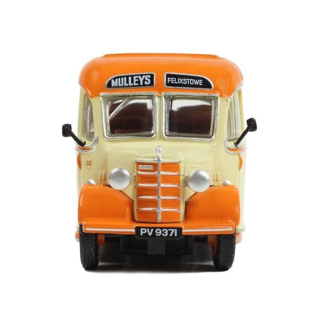 The Bedford OB Coach is a symbol of post-war British transport, widely used for public and private hire. The Mulleys Motorways livery is a nod to the rich history of regional bus services in the UK, making this model a cherished piece for enthusiasts.