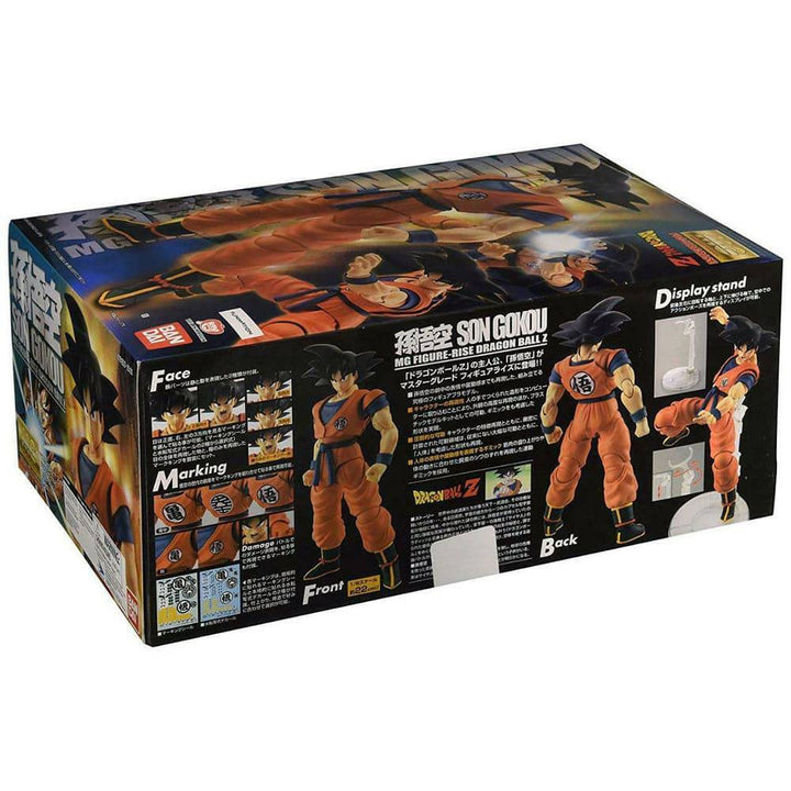 An action figure you build your self, MG Figurine Son Goku combines engineering and easy to assemble model techniques from Bandai's Gundam model lines with the playability of an action figure! Color molded, requiring no paint, Goku is highly detailed and even features muscle action in his biceps. Comes with different eye stickers and interchangeable facial expressions to put Goku in all sorts of iconic Dragon Ball poses. Special marking stickers also allow replication of Goku' s different GI symbols throughout the DBZ saga. Display stand included.