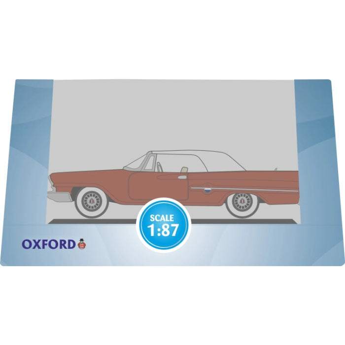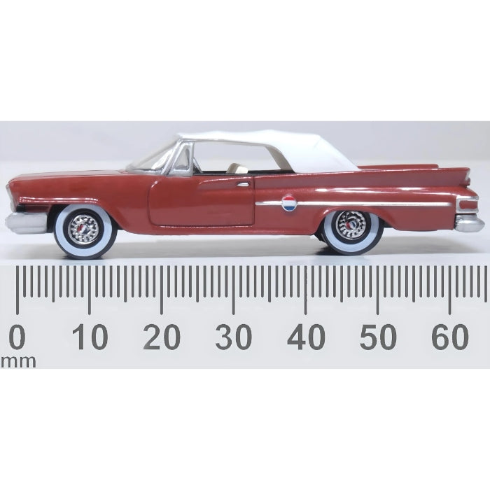 1/87 Chrysler 300 Convertible 1961 Cinnamon/White by Oxford delivers eye-catching American style for classic car collectors, HO scale modellers, and vintage convertible enthusiasts.