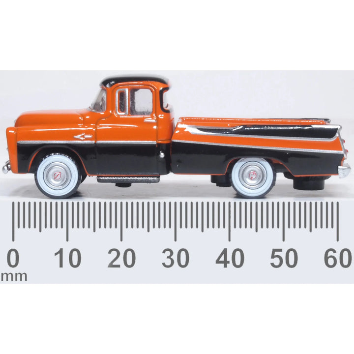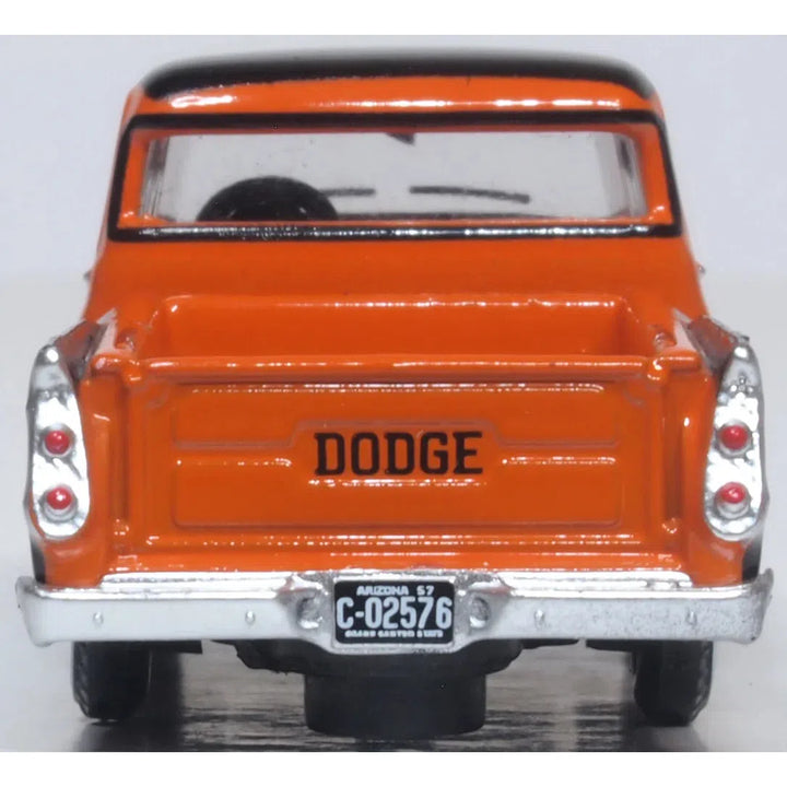 1/87 Dodge D100 Pick Up 1957 Omaha Orange and Jewel Black by Oxford delivers eye-catching vintage utility for American classic truck collectors and HO-scale modellers.